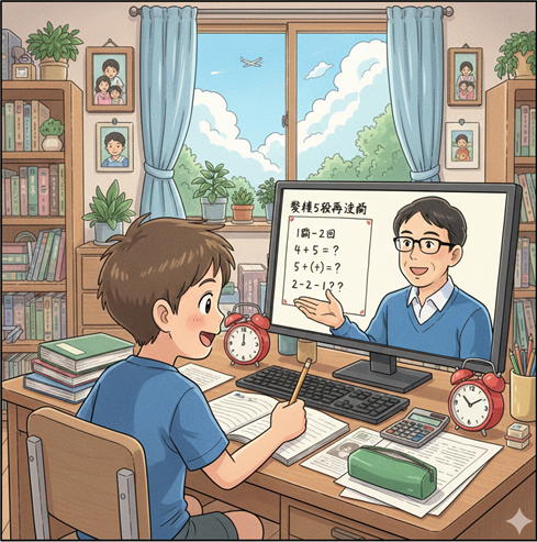 本日、小5(インターナショナルスクール)のオンライン指導を行い、数検5級(中1レベル)の総仕上げとなる過去問演習を実施しました。 今日までに、丸善の公式過去問(4回分)と学研の過去問集(4回分)、計8回分もの演習をすべて […]