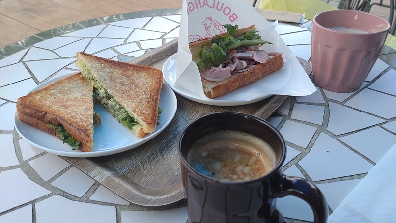 地元の素材を活かした「つくば鶏のホットサンド」と、温かいコーヒーを注文。