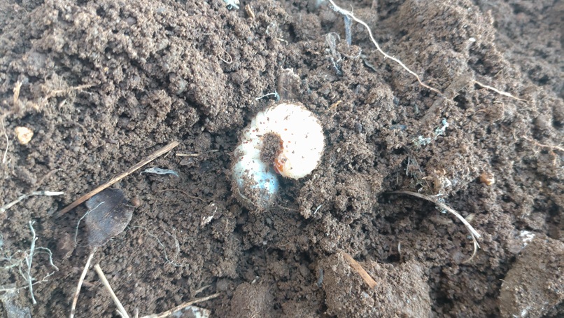 土の中をのぞくと、そこにはカブトムシの幼虫たちの姿がありました。彼らは未分解の有機物を食べて分解してくれる、いわば「土づくりのプロ」でもあります。